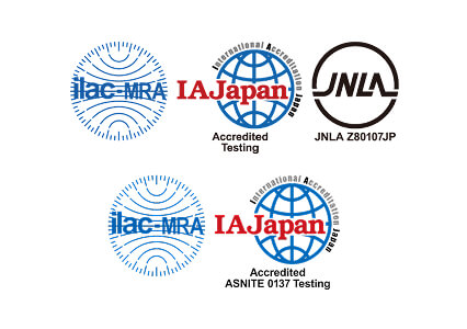 電気製品・医療機器・車載機器の安全試験・EMC試験において、ISO/IEC 17025の要求を満たしている試験機関としてVLAC(IAF/MRA)、NITE(JNLA)より認定
