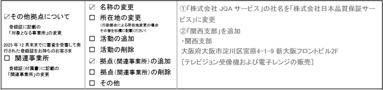 ※IATF 16949につきましては、専用の登録内容変更申込書(PDF:1.2MB) を用意していますので、そちらにてご連絡ください。