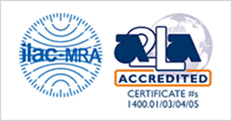 JQA 計量計測センター(1400.01)、中部試験センター(1400.04)、関西試験センター(1400.03)および九州試験所(1400.05)は、ISO/IEC 17025に基づきA2LAから校正機関として認定されています。